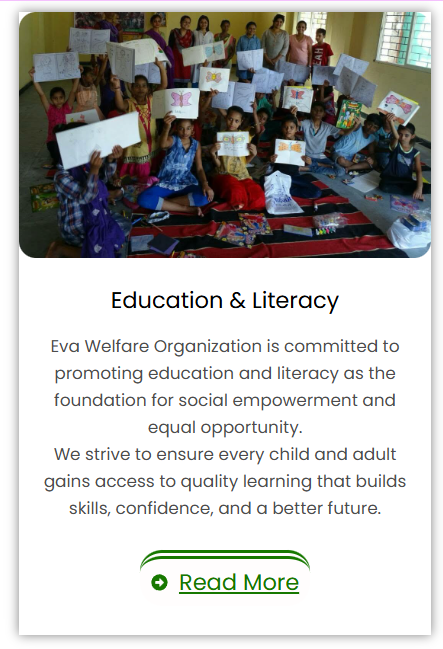 Eva Welfare Organization is committed to promoting education and literacy as the foundation for social empowerment and equal opportunity.